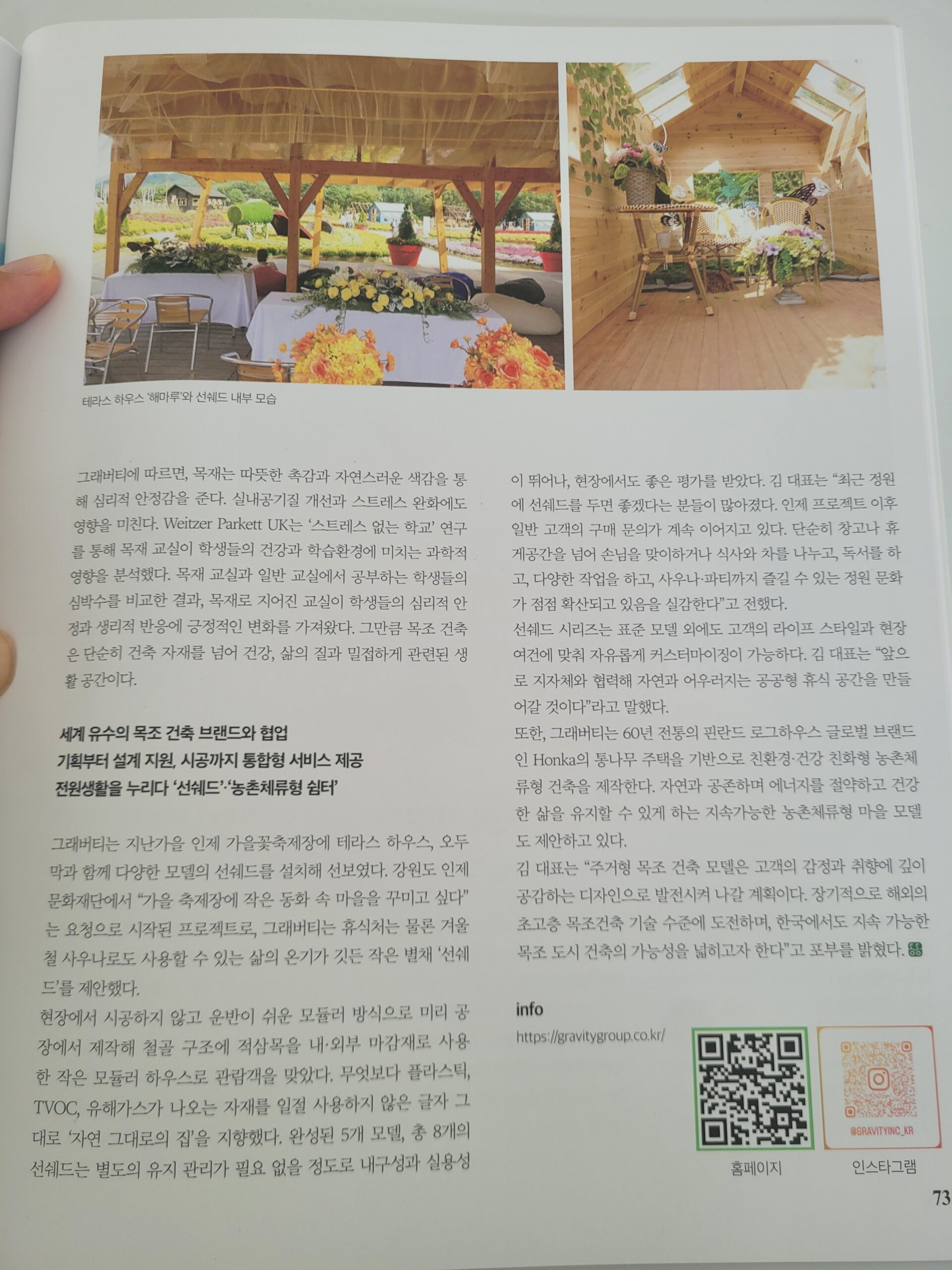 대한민국 대표 정원 전문 매거진『월간가드닝』2025-12월호에 탄소를 줄이는 목조 건축, 그래버티의 농촌체류형 쉼터 관련 내용이 소개되었습니다.