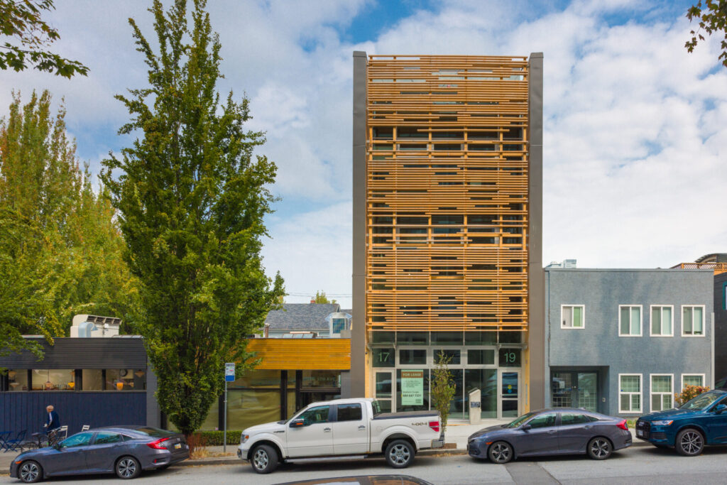 oN5 is an homage to the beauty, structural performance, and sustainability of mass timber. Located in the heart of Mt. Pleasant, an up-and-coming neighborhood in Vancouver, the choice to use mass timber was an altruistic one and made effortlessly by structural engineer-turned-developer, Robert Malcek, principal of Equilibrium, which happened to be the engineering firm for this project.